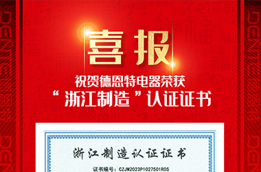 正值德恩特電器燃?xì)庑缕氛谏鲜兄H,又獲重磅利好,德恩特電器在浙江省眾多優(yōu)秀企業(yè)的競(jìng)爭(zhēng)中脫穎而出,榮獲“浙江制造”認(rèn)證證書,被授權(quán)使用“品”字標(biāo)志,正式躋身于“品”字標(biāo)浙江制造高端品牌大家庭。