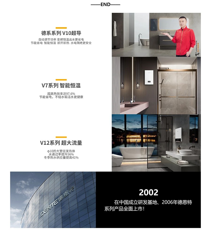 德恩特品牌旗下涵蓋即熱式電熱水器,速熱式電熱水器,快熱式電熱水器品牌和凈水機(jī)等
